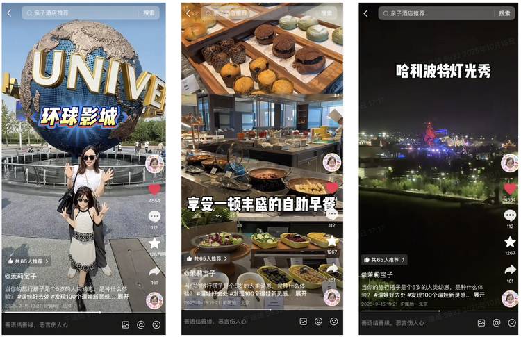 在新开业的北京通州皇冠假日酒店,平台通过组织优质达人探店的方式,展现了酒店毗邻环球影城的区位优势和多样主题客房,突出其“城堡灯光秀+主题住宿”的差异化记忆点,累计产出视频超300条;此外,平台将达人视频作为投流素材,通过定向推送亲子人群实现流量增效,使达人内容价值得到最大化释放,最终达人视频累计播放量突破280万,该酒店活动期间累计支付达930万。